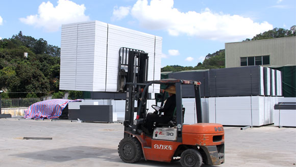 【圍擋入庫】是將生產完成的圍擋進行入庫,進入發貨狀態,在經過前面四種工藝材料切割、墻板折彎、立柱焊接、烤漆后,圍擋已幾乎完成,這時就需要將生產好的配件進行入庫存放,大通建材在生產產區旁新建了占地面面積約5000平米的發貨廠區,達到客戶下單即可安排發貨效率。